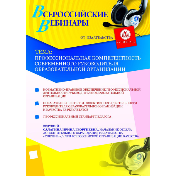 Приглашаем руководителей ОО, заместителей руководителя по УВР, педагогов, воспитателей, старших воспитателей, методистов, специалистов ДОО, а также специалистов в области образования принять участие в offline-семинаре «Профессиональная компетентность современного руководителя образовательной организации».