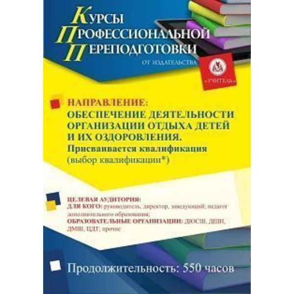 Обеспечение деятельности организации отдыха детей и их оздоровления. Присваивается квалификация (выбор квалификации*) (550 ч.)