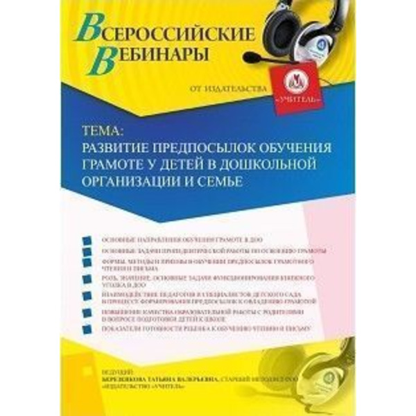 Вебинар "Развитие предпосылок обучения грамоте у детей в дошкольной организации и семье"