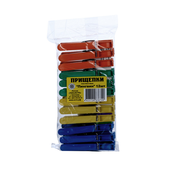 Прищепки КСТК бельевые Пингвин 8 см, 12 шт, цвет микс