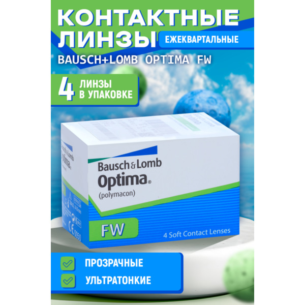 Линзы Bausch+Lomb Optima FW контактные R 8.7 (диоптрия -3,5), 4 шт