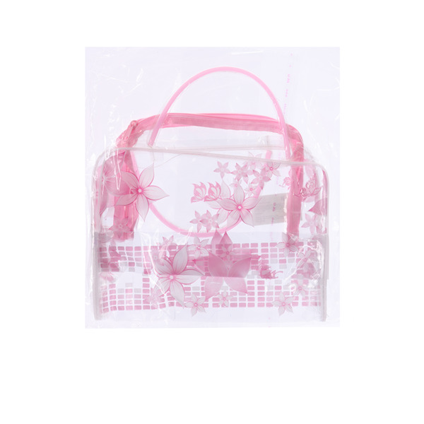 Косметичка ПВХ, отдел на молнии, 2 ручки, розовые цветы