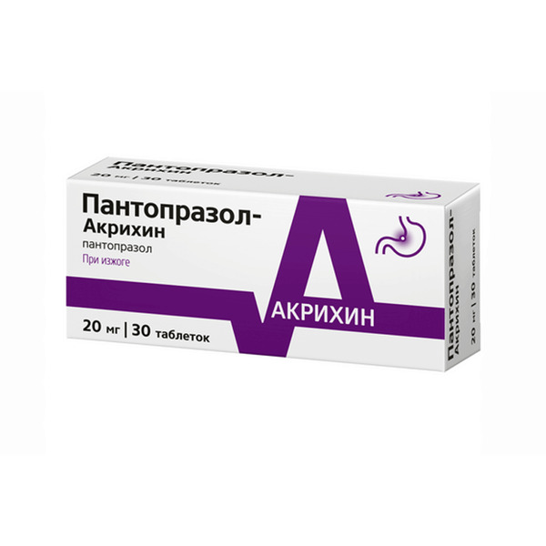 Пантопразол-Акрихин 20 мг, 30 шт, таблетки кишечнорастворимые покрытые пленочной оболочкой
