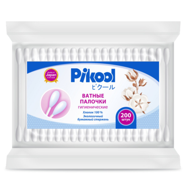 Ватные палочки гиг Пикул, 200 шт, пакет