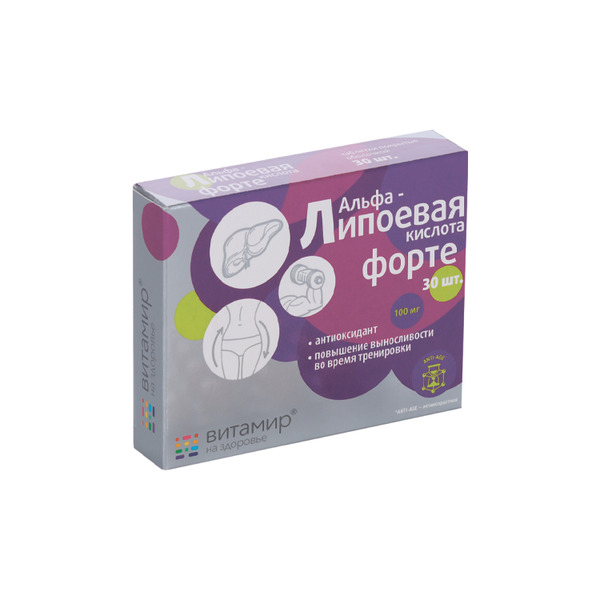 Альфа-Липоевая к-та форте 100 мг, 30 шт, таблетки