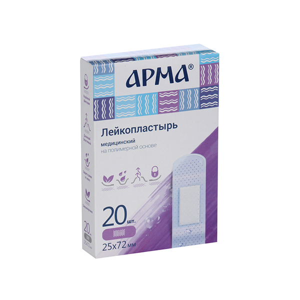 Лейкопластырь Арма медицинский на полимерной основе 25х72 мм, 20 шт