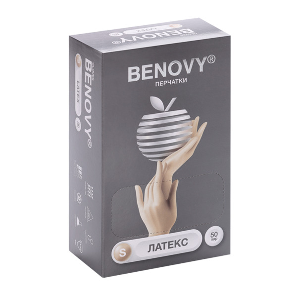 Перчатки BENOVY смотр/латекс/нестирил/неопудр/хлориров пара S, 50 шт