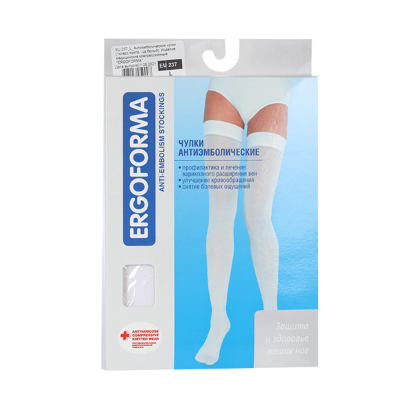 Чулки Ergoforma антиэмболические 1 класс компр белый EU 237 р L, пара