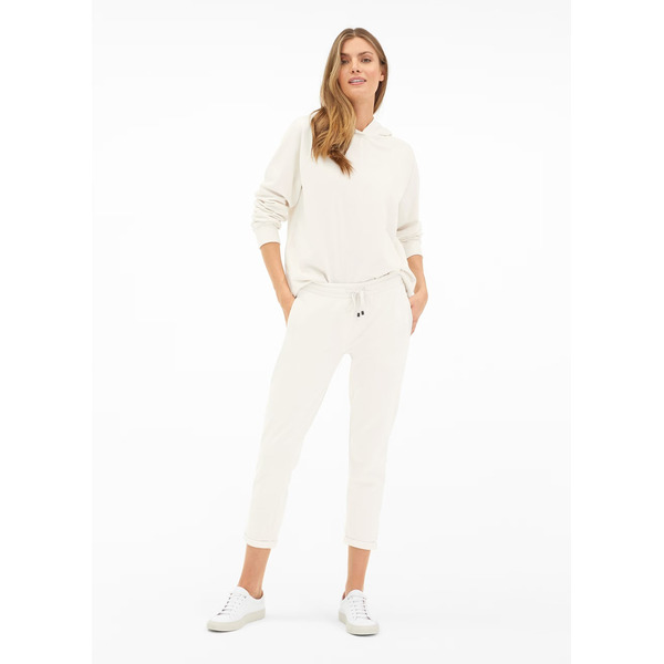 Эти спортивные штаны облегающего силуэта имеют современную укороченную длину 7/8. Фиксированные отвороты и повседневные накладные карманы на бедрах придают им спортивный вид. Ребристый пояс с утягивающим шнурком придает изделию классический вид. Сшиты из сверхмягкого хлопкового материала.
