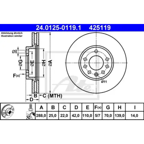Тормозной диск ATE 24.0125-0119.1 вентилируемый передняя ось
