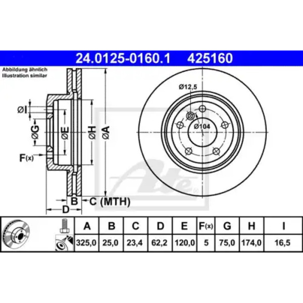 Тормозной диск ATE 24.0125-0160.1 вентилируемый передняя ось