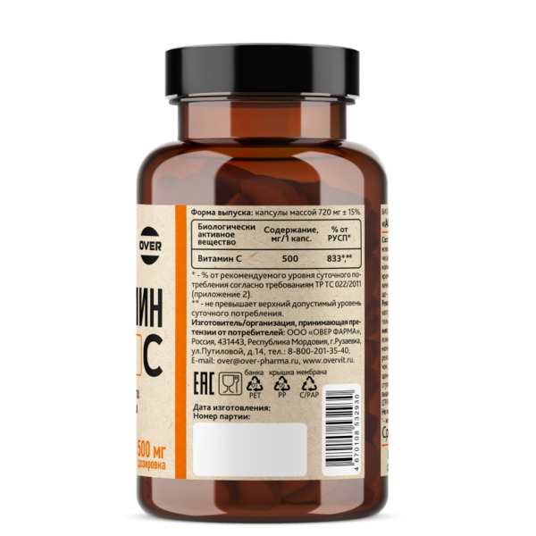 Аскорбат кальция 500 мг, 60 капсул (OVERVit)