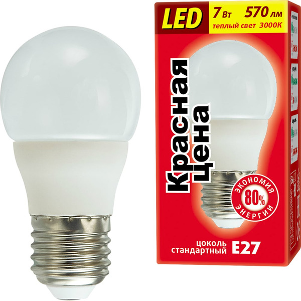 КРАСНАЯ ЦЕНА P45 7W E27 3000K 570лм