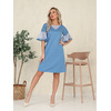 Очаровательное платье А-силуэта из трикотажного полотна голубого цвета. Круглый вырез изделия эффектно подчеркнут кружевом и обработан атласной бейкой. Цельнокроенные рукава дополнены воланами из кружева и обработаны окантовкой. Аксессуары в комплект не входят.