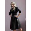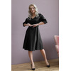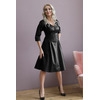 Эффектное платье полуприлегающего силуэта из эко-кожи черного цвета. V-образный вырез изделия обработан внутренней обтачкой. Платье со спущенной проймой и втачными рукавами. По переду изделия выполнена планка с застежкой на пуговиц. Платье дополнено декоративными отстрочками. По боковым швам - карманы Длина изделия по спинке от плечевого шва до низа изделия - 100 см. Рост фотомодели — 170 см.