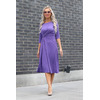 Очаровательное платье полуприлегающего силуэта из трикотажного полотна фиолетового цвета. Круглый вырез изделия обработан внутренней обтачкой. Платье отрезное по линии талии. По переду изделия выполнен декоративный перекрут. Платье с втачными рукавами. Длина изделия по спинке от плечевого шва до низа изделия — 110 см. Рост фотомодели — 170 см.
