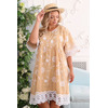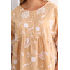 Очаровательной платье А-силуэта из текстильной ткани (хлопок с вышивкой) бежево-белого цвета. Кргулый вырез изделия обработан окантовкой. Кокетка переда дополнена планкой с застежкой на пуговицы. Линия груди эффектно подчеркнута сборкой. Платье с цельнокроеными рукавами. Длина изделия по спинке от плечевого шва до низа изделия — 103 см. Рост фотомодели — 170 см.