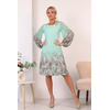Очаровательное платье прилегающего силуэта из трикотажного полотна мятного цвета с купонным рисунком. Круглый вырез изделия обработан внутренней обтачкой. Втачные рукава выполнены из шифона и обработаны окантовкой. Длина изделия от плечевого шва по спинке до низа изделия — 101 см.