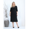 Привлекательное платье полуприлегающего силуэта из трикотажного полотна черного цвета. Круглый вырез изделия обработан окантовкой. Верхняя часть переда дополнена изящным вырезом. Платье с втачными рукавами. По бокам изделия разрезы. Длина изделия по спинке от плечевого шва до низа изделия — см. Рост фотомодели — 170 см.