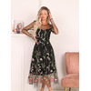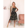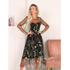 Очаровательное платье прилегающего силуэта из трикотажного полотна черного цвета. Платье двойное, кружево на трикотажной основе. Круглый вырез изделия и втачные рукава обработаны окантовкой. Платье отрезное по линии талии, линия талии эффектно подчеркнута сборкой. Длина изделия по спинке от плечевого шва до низа изделия — см. Рост фотомодели — 170 см.