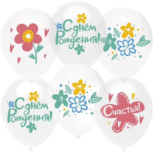 Шар (12"/30 см) Яркие цветы, С Днем Рождения!, Прозрачный (701), кристалл, 1 ст, 25 шт.