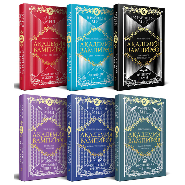 Академия вампиров. Подарочный комплект: Последняя жертва. Оковы для призрака. Кровавые обещания. Поцелуй тьмы. Ледяной укус. Охотники и жертвы (комплект из 6 книг в футляре)
