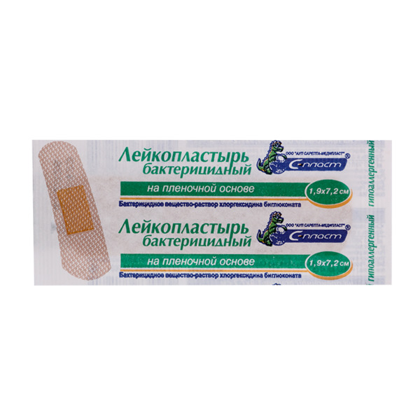 Лейкопластырь С-пласт бактериц на пленоч основе с хлоргексидином телесный 1.9х7.2 см