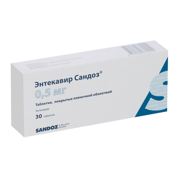 Энтекавир Сандоз 0.5 мг, 30 шт, таблетки покрытые пленочной оболочкой