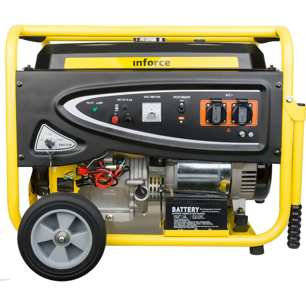 Бензиновый генератор Inforce IN8000E 04-03-07 снабжает потребителей качественным электротоком в случае возникновения аварии на линии электропередач. Модель успешно используется на дачах, в небольших поселках или деревнях. Электростартер существенно облегчает запуск оборудования. Экономный расход топлива обеспечивает длительную работу модели на одной заправке - до 8 часов при нагрузке 75%. Медная обмотка генератора способствует стабильной эксплуатации. Устройство оснащается вольтметром для визуального контроля выходного напряжения. Ключи зажигания находятся под крышкой бака.