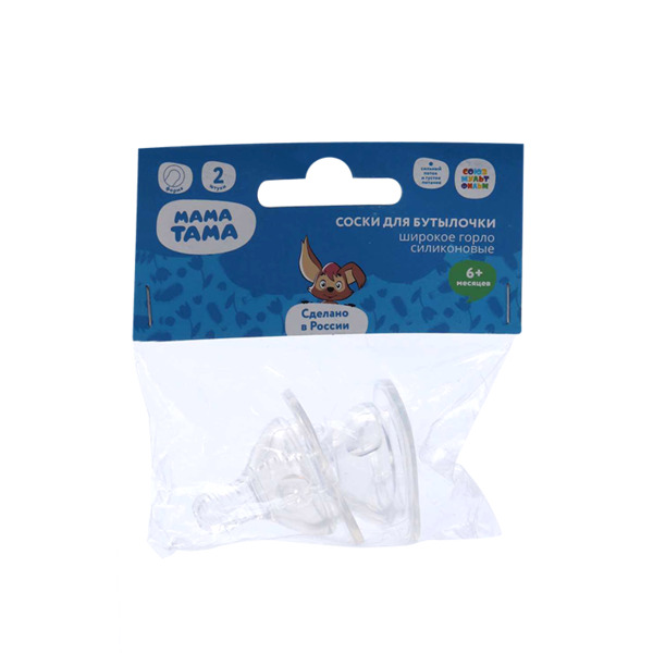 Соска Мама Тама силик сильный поток/густ питание д/бутылочек с широк горлышком (с 6 мес), 2 шт