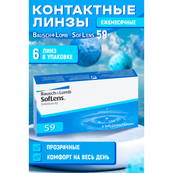 Линзы Bausch+Lomb SofLens 59 контактные R 8.6 (диоптрия -2,75), 6 шт