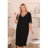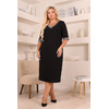 Стильное платье полуприлегающего силуэта из трикотажного полотна черного цвета. V-образный вырез и втачные рукава обработаны декоративным подвязом. Длина изделия по спинке от плечевого шва до низа изделия — 111 см. Рост фотомодели — 170 см.