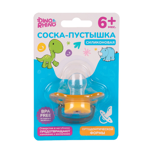 Соска-пустышка DINO&RHINO силиконовая ортодонтическая (с 6 мес)
