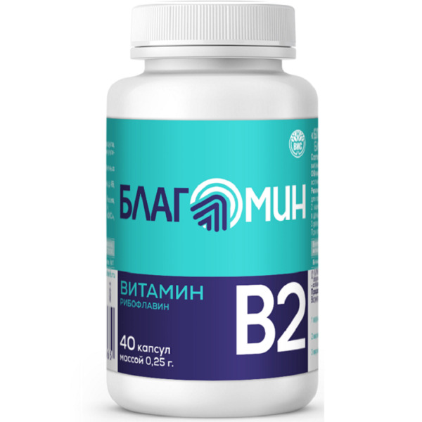Благомин Витамин В2 (рибофлавин), 0,25 г, 40 шт, капсулы