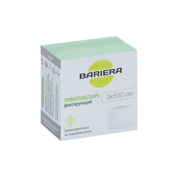 Лейкопластырь Bariera фикс тканевый 3х500 см, белый