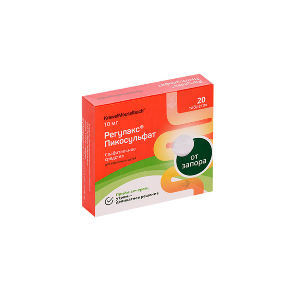 Регулакс Пикосульфат 10 мг, 20 шт, таблетки