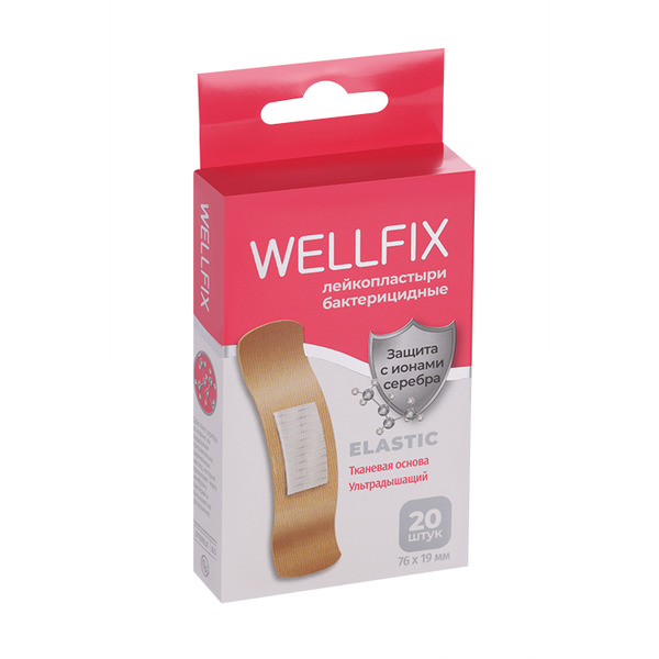 Лейкопластырь Wellfix бактерицидный на тканевой основе Elastic, 20 шт