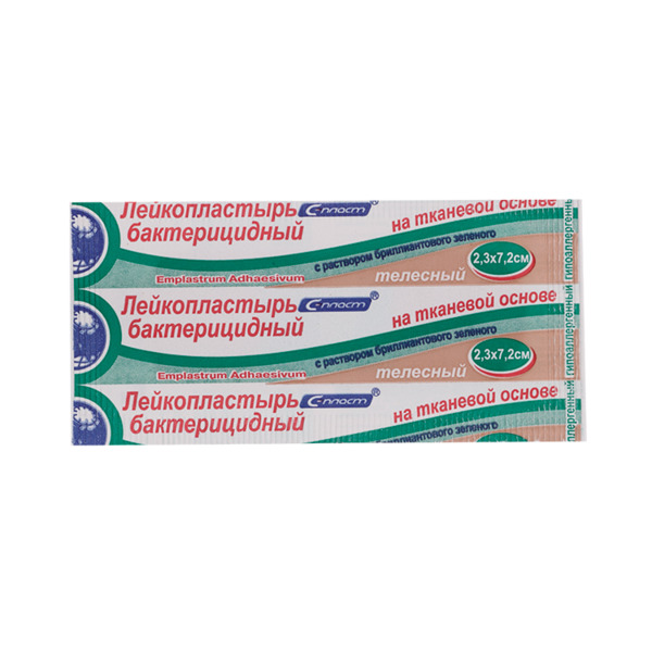Лейкопластырь С-Пласт бактериц на тканевой основе пропитка бриллиант зеленого телесный 2.3х7.2 см