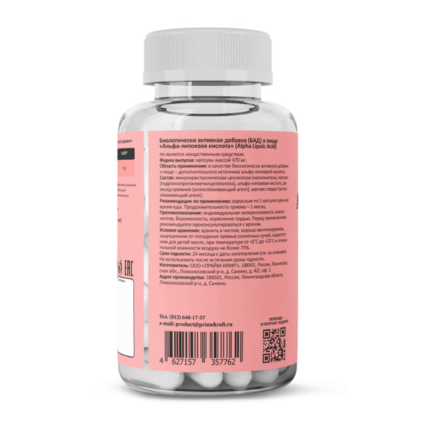 Альфа-липоевая кислота Prime Kraft, 60 шт, веган капсулы