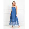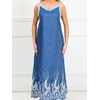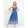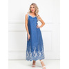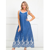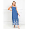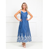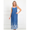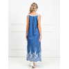 Роскошный сарафан полуприлегающего силуэта из текстильной ткани (хлопок). Фигурный вырез изделия и проймы рукавов обработаны контрастными трикотажными подвязами. По бокам изделия - внутренние карманы. Длина изделия по спинке от плечевого шва до низа изделия — 120 см.