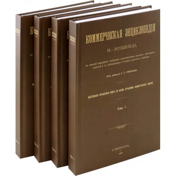 Репринт с издания. Коммерческая энциклопедия М. -Ротшильда, в полной переделке сообразно потребностям русских предпринимателей и с добавлением 6 новых русских отделов. Под ред. и с предисл. С. С. Григорьева. СПб. , изд. В. Э. Форселлеса, 1901. Автор — основатель банковской компании во Франкфурте-на-Майне (1743-1812). Тираж 30 экз. выполнен по технологии print-on-demand.