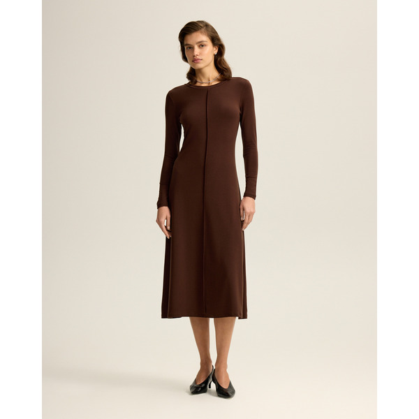 Платье с акцентным швом, из тенселя с шерстью, коричневый
