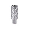 Корончатое сверло имеет посадку WELDON19 и предназначено для использования в магнитных станках. Коронка изготовлена из быстрорежущей стали HSS M2 (улучшенный аналог Р6М5). Выбор материала коронки обусловлен прежде всего типом обрабатываемого материала. Общие правила таковы: для работы по конструкционным сталям и в условиях недостаточной жёсткости системы "станок-инструмент-деталь" (наличие вибраций), выбирают материал коронки HSS, при обработке легированных сталей и нержавеющей стали выбирают коронку с ТВ пластинами. Обладает высоким ресурсом резания! Есть возможность осуществлять перезаточку до 5 раз, при этом ресурс будет снижаться, по сравнению с заводской заточкой. Необходимо использовать штифт размером 6,35/77 мм, артикул 71506003 № 503. Также применяется на сверлильных станках с посадкой MK1/ MK2/ MK3 через переходник № 410 / 411 /412. Использование СОЖ обязательно, только в этом случае инструмент обеспечивает максимальный ресурс. Является расходным материалом, гарантия не предоставляется!