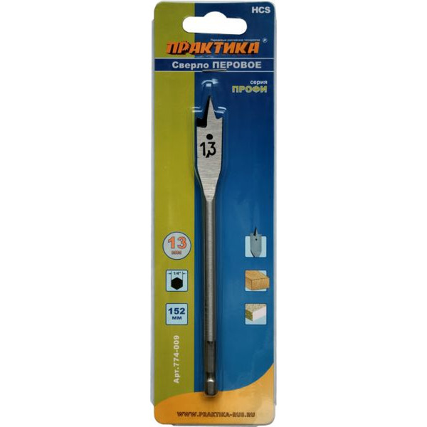 Сверло перьевое по дереву Практика 13*152мм 774-009
