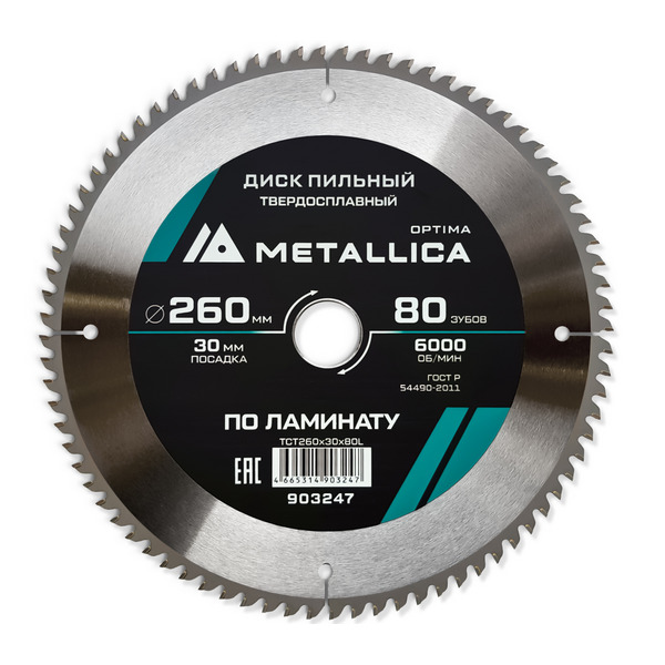 Диск пильный по ламинату Metallica Optima 260*30*80T Т=2,8мм 903247