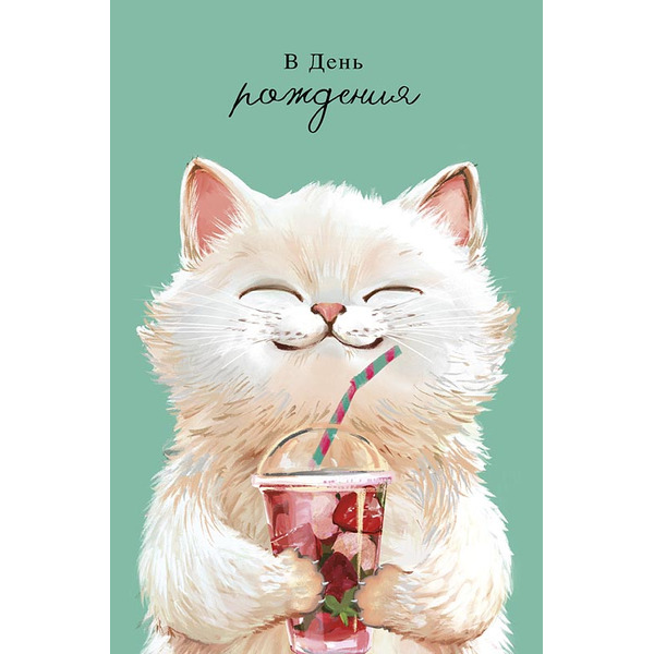 Открытка, В День Рождения (котик), 12,1*18,3 см, 5 шт.