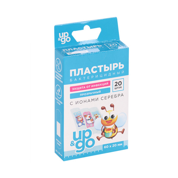 Пластырь UP&GO бактерицид детский с серебром Тату/ tattoo прозрачный 60х20 мм, 20 шт