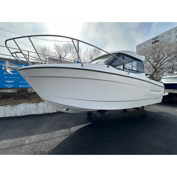 Минимум, который можно установить на 700-ый, — 115 «лошадей». При экипаже в два человека и полном баке топлива производитель обещает выход в глиссирующий режим. Для этого конструкторы в кормовой части корпуса разместили гидролыжу.