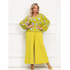 Эффектные брюки свободного силуэта из текстильной ткани цвета лайм. Верхняя часть брюк обработана поясом с резинкой. По бокам - внутренние карманы. Длина изделия от пояса до низа — см. Рост фотомодели — 170 см.