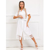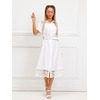 Обаятельное платье полуприлегающего силуэта из текстильной ткани белого цвета. Платье с отложным воротником. Верхняя часть переда выполнена из кружева. По переду изделия выполнена планка с застежкой на пуговицы. Платье с втачными рукавами. Линия талии эффектно подчеркнута внутренним швом с резинкой. Ремень в комплект не входит. Длина изделия по спинке от плечевого шва до низа изделия - см. Рост фотомодели — 170 см